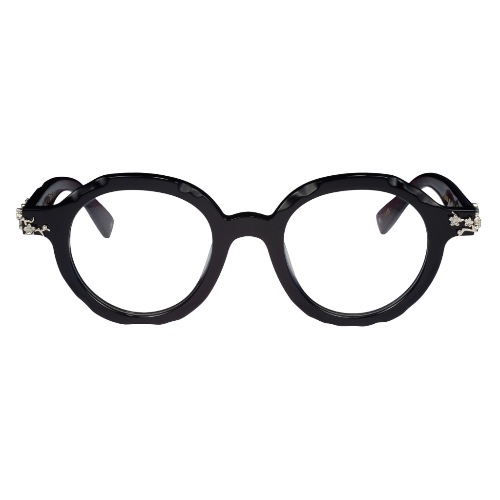See and be seen with Hakone! These chunky rounded glasses feature a playful metal blossom detail at the temples, adding a fun touch to a bold look. Embrace your softer side with these statement glasses. (Warning: may cause increased attention and compliments.)