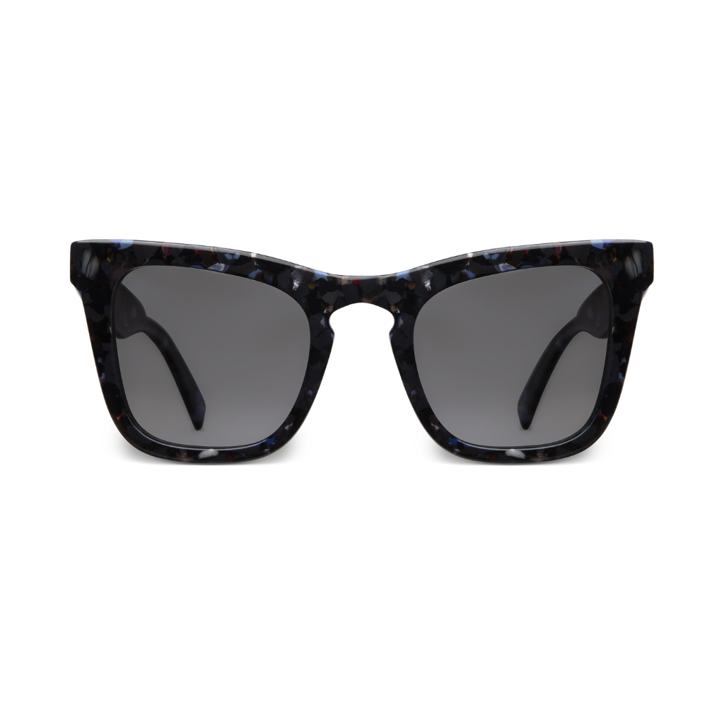 Old glasses have been collected and ground back to fine particles creating a new recycled material. Unique AND sustainable eyewear. It's a must-see product and one to watch for the future of eyewear. Suitable as optical or sunglasses. Sharp square shape.