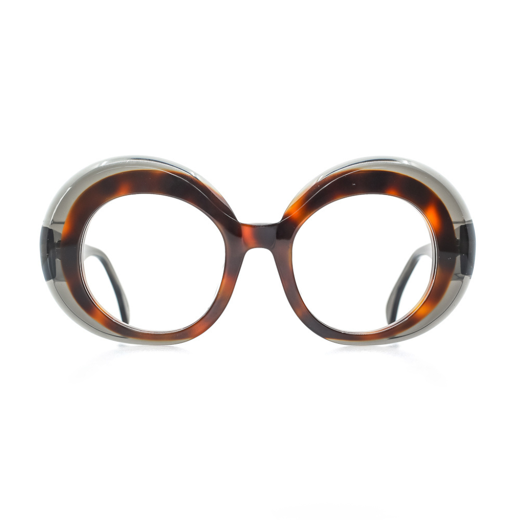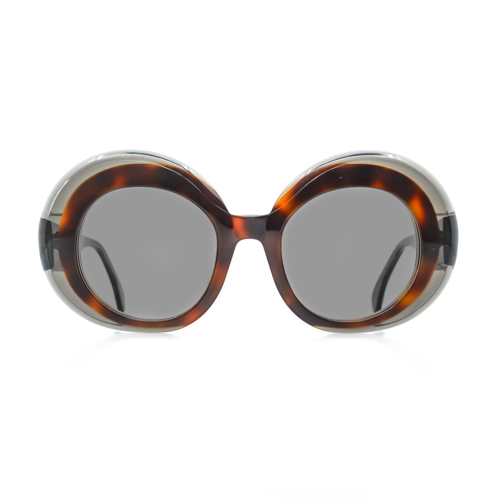 Miramar revisits the codes and exuberance of the sixties with a two-tone XXL curve and a theatrical play on transparency which makes it unforgettable. This oversized rounded shape could easily work as an optical for those wanting a bold, confident style statement.