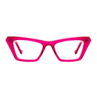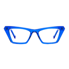Bold, angular cat eye glasses with chunky silhouette. For those that want a striking, dramatic look with their glasses.