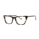 Slim angular cat eye glasses with a fine silhouette. For those that want a striking, dramatic look with their glasses. A sharp angular frame that's perfect for those with rounded features.